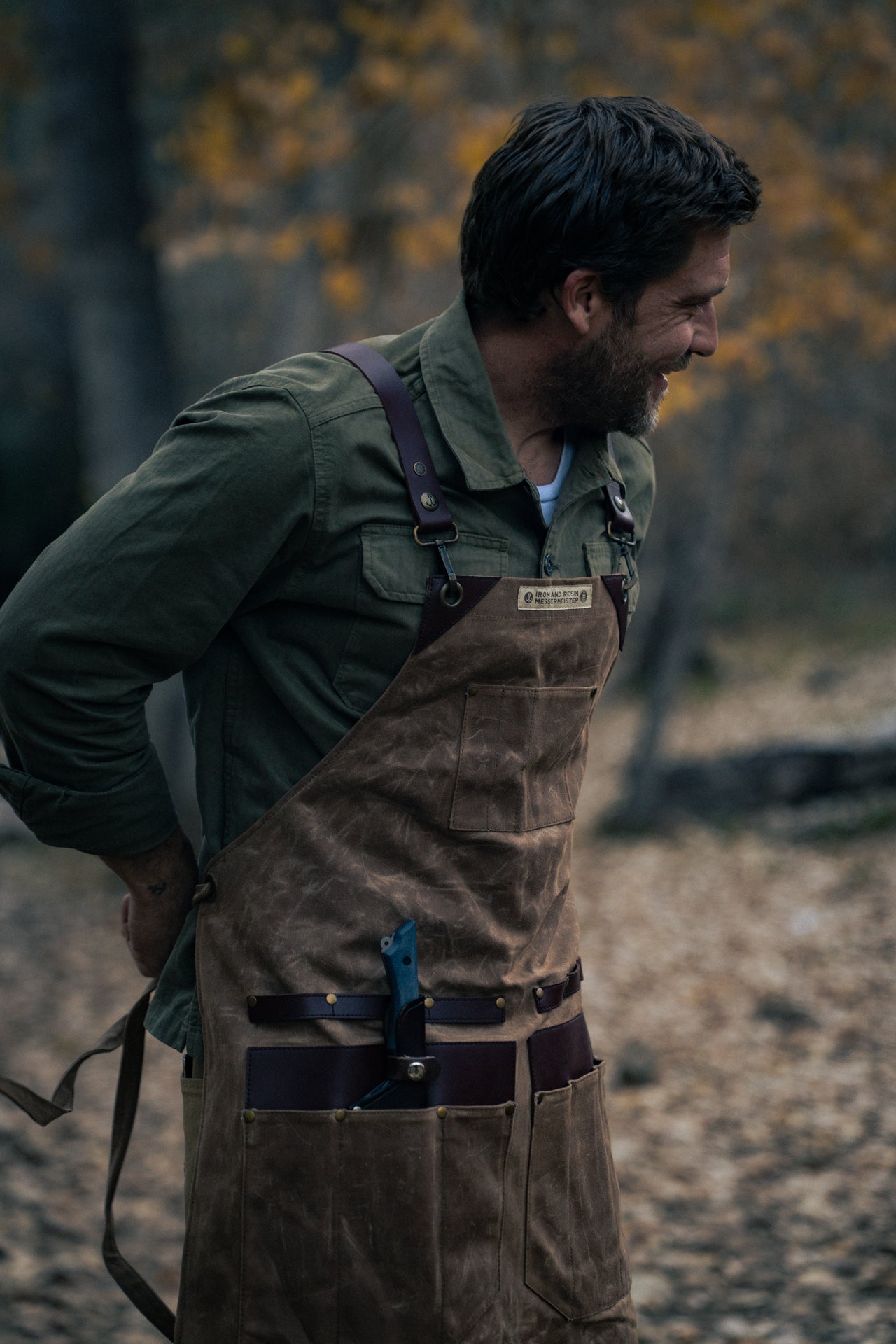 From the Field and Flame Collection, welcome the Messermeister X INR Canvas Apron. Whether it's around the workbench, the cutting board, or the campfire.. two like-minded companies have crossed paths where good work gets done. Built in collaboration with Messermeister who lives by sharp tools and honest craftsmanship, this apron was designed to handle real use, whether you’re breaking down a cut of meat, cooking over open flame, or putting in long hours at the shop. More than just protection, this apron represents the shared belief that the best gear earns its place through use - serving both the work at hand and the lifestyle that surrounds it.