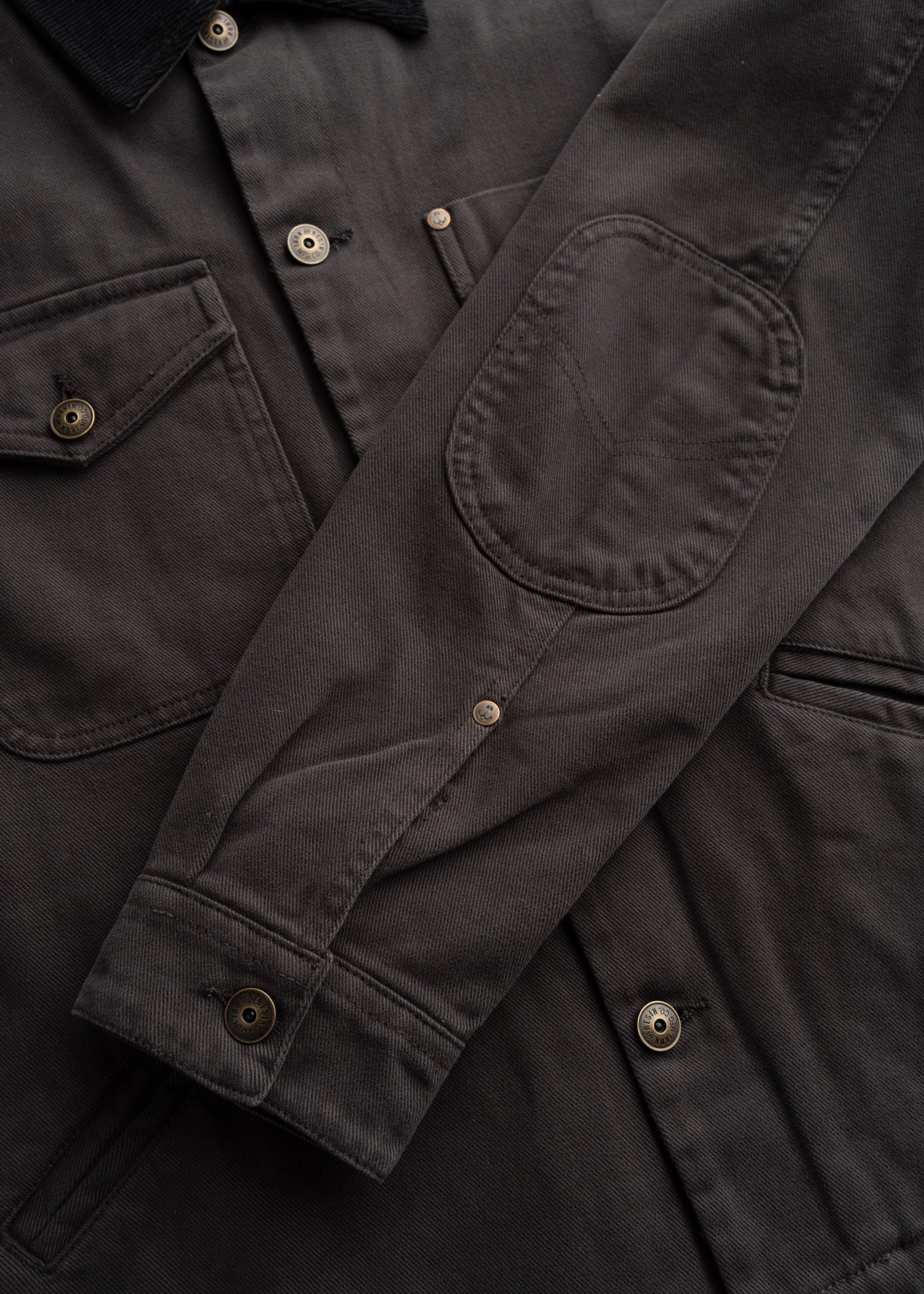 Say hello to our Bull Denim Bronson Jacket - breathable and durable bull denim has been in our rotation for a couple of seasons now, and we've decided to reimagine a favorite of ours. We gave it a corduroy collar for a hit of contrast and added a mix of utility and character with two chest pockets. An open top on the left, and a shank-button flap on the right, plus inlaid welt hand pockets give you extra function without the bulk. Finished with shank button hardware throughout, it's a jacket that works as hard as it looks.