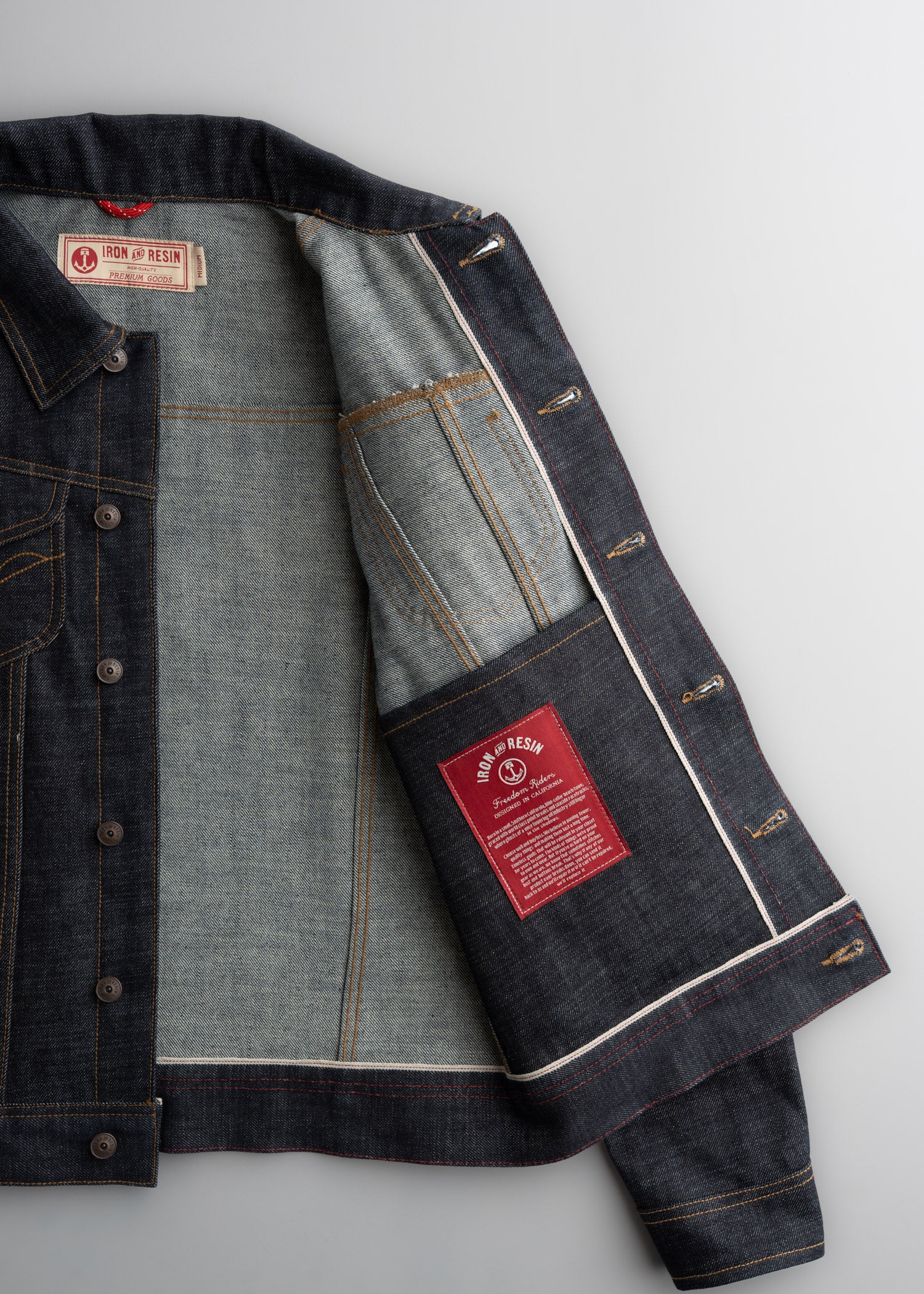 - 15.5 oz. 100% cotton selvedge denim